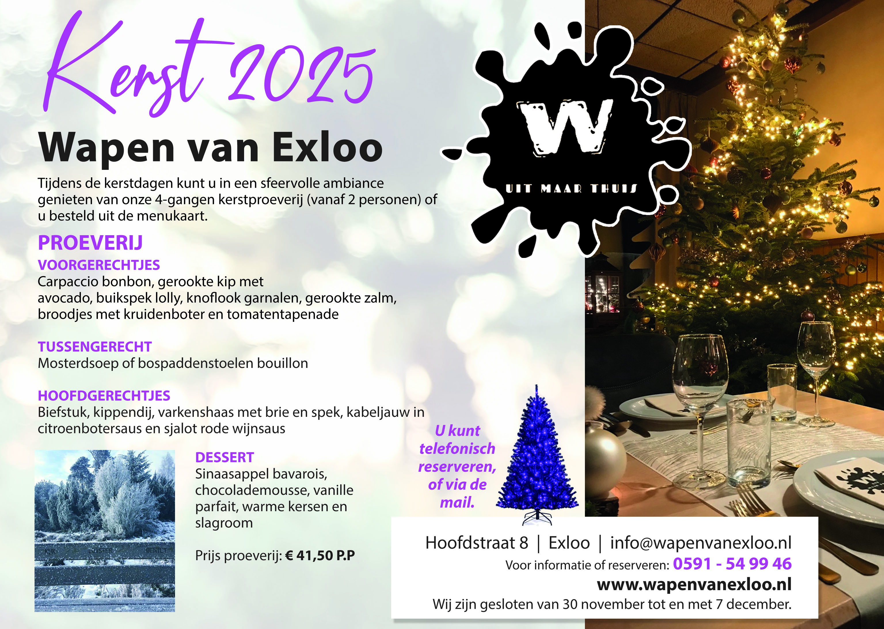 Zaterdag en zondag geopend vanaf 12:00